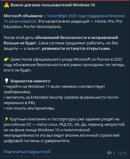 До окончания поддержки Windows 10 остался всего месяц...